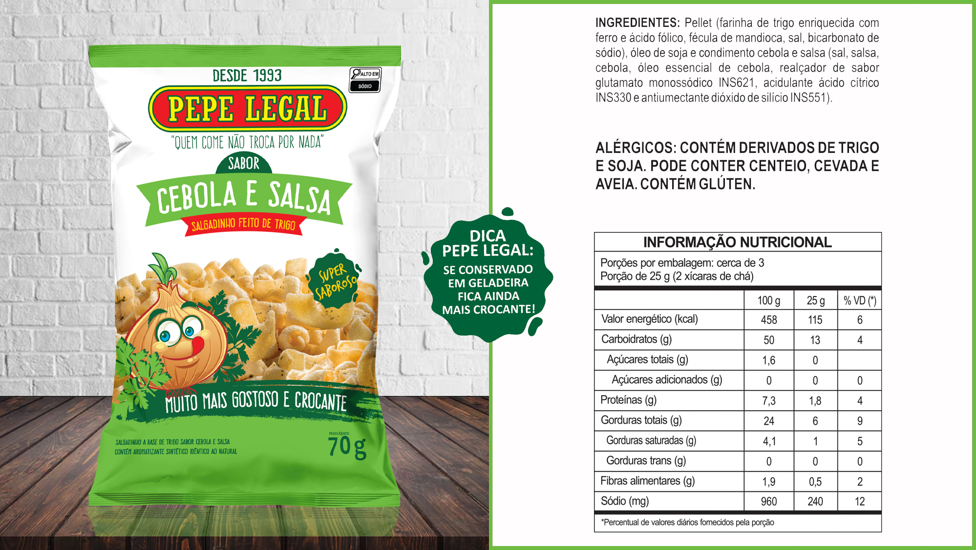 Ele chegou! O delicioso e tão esperado salgadinho de cebola e salsa, mais um pra família Pepe Legal