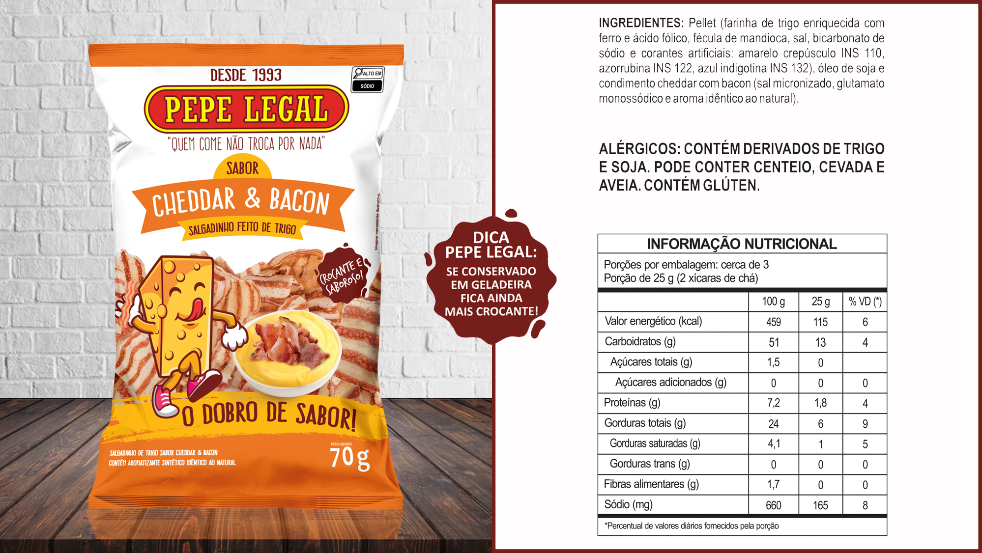 Salgadinho de Cheddar e Bacon Pepe Legal